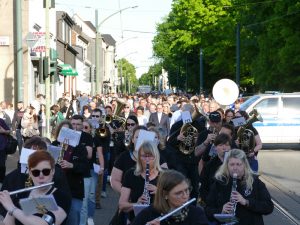Essens Nordwesten war vom 9. bis 12. Mai mal wieder happy. Die 26. Happy Days, die Jahresveranstaltung für die Orte Dellwig und Gerschede, wurde auf dem Festplatz gefeiert, und das bei bestem Kirmeswetter. Am Freitagabend zogen traditionell Bürgerinnen und Bürger, Abordnungen von Vereinen und Politiker aus Rat und Bezirksvertretung gemeinsam mit Oberbürgermeister Thomas Kufen vom Kraienbruch zum Festplatz. Begleitet wurden sie musikalisch vom Ruhr Sound Orchester. Mit dem Steigerlied endete der Marsch vor der Bühne auf dem Festplatz.