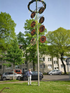 Am Montag, den 29.04.2024 stellte der BVV Essen-Dellwig/Gerschede 1910 e.V. zusammen mit Mitarbeitern des Seniorenstifts Martin Luther und der Feuerwehr den Maibaum 2024 auf.